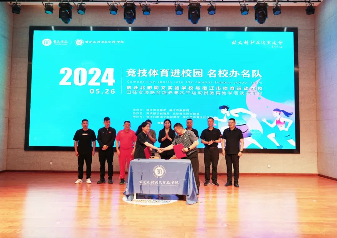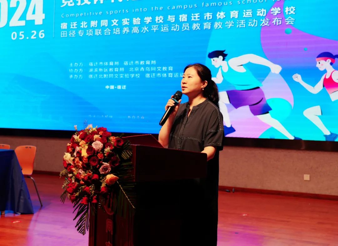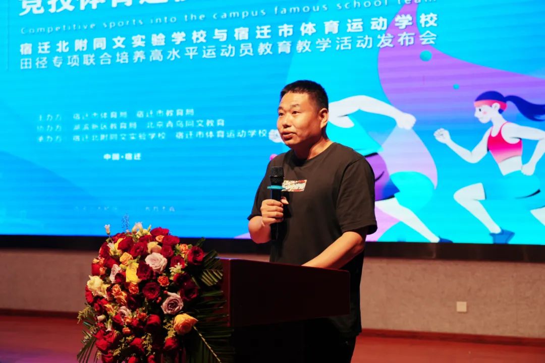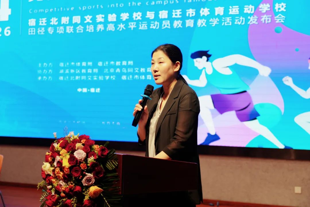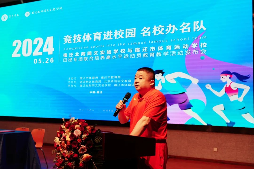 為進(jìn)一步推進(jìn)體教融合工作,加快宿遷市優(yōu)秀體育后備人才的培養(yǎng),有效推動“體教融合 名校育名隊”項目。5月26日,宿遷北附同文實驗學(xué)校與宿遷市體育運動學(xué)校隆重舉行田徑專項聯(lián)合培養(yǎng)高水平運動員教育教學(xué)活動發(fā)布會?;顒佑晌倚=處煱l(fā)展處葛旋主任主持。