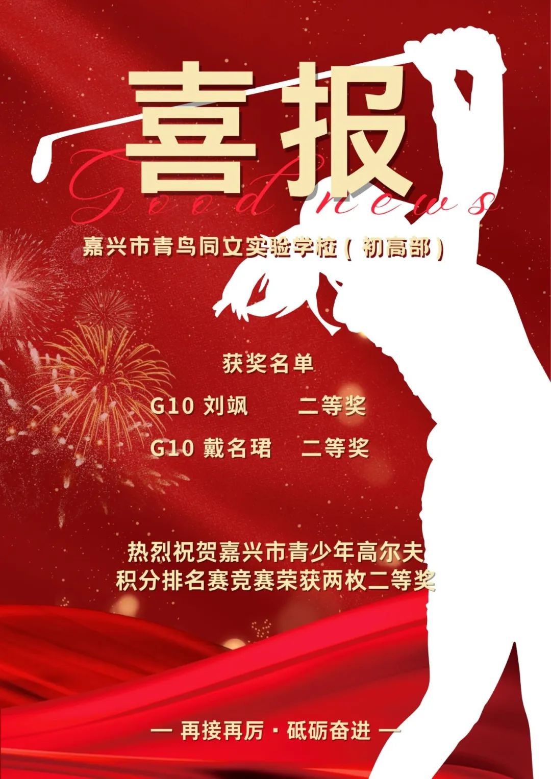 再次恭喜獲獎(jiǎng)兩位同學(xué),也感謝具有豐富和完備的高爾夫知識和教學(xué)經(jīng)驗(yàn)的何老師的付出與努力,期待我校學(xué)子在即將到來的各項(xiàng)比賽中再接再厲,收獲更多佳績!